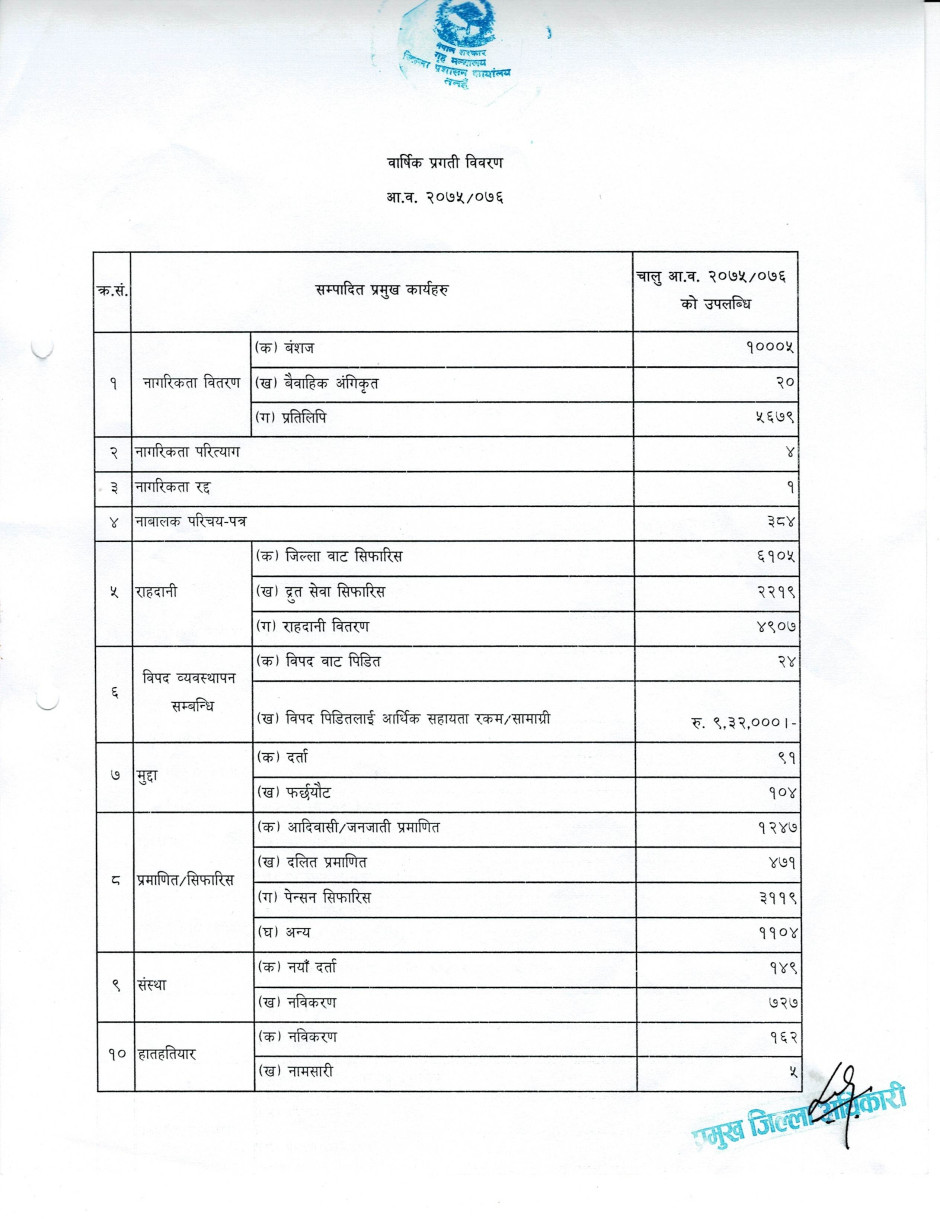 आ.व. २०७५/७६ सालमा भए गरेको प्रगति विवरण