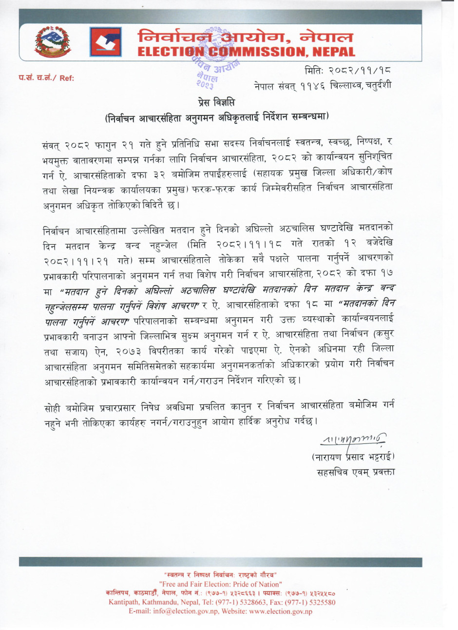 निर्वाचन आयोग नेपालबाट जारी सूचना ।